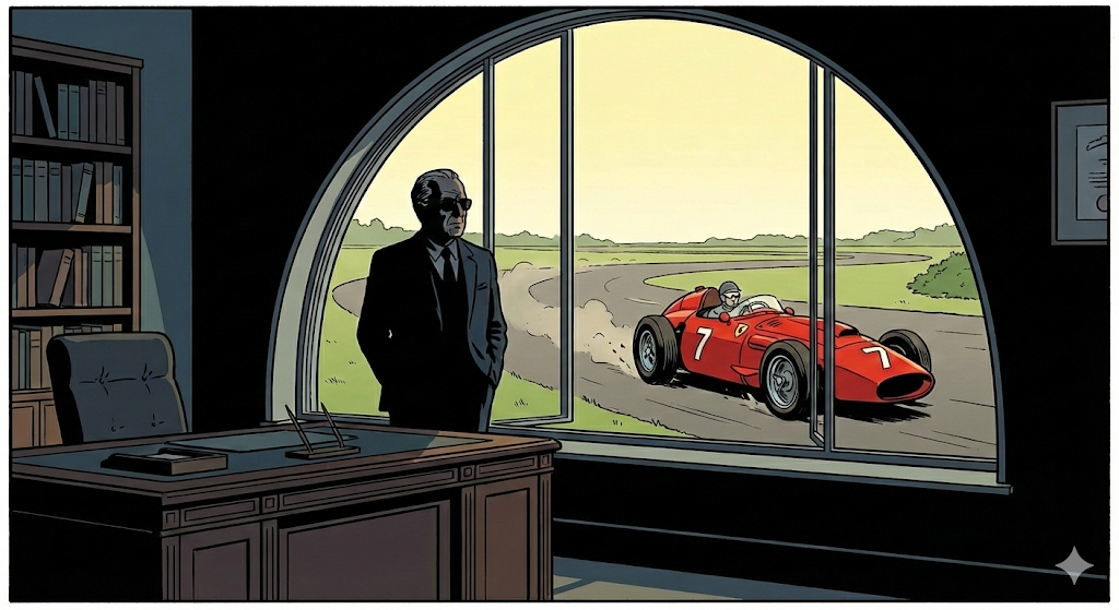 Ferrari baute die stärksten Motoren der Welt. Der erste Sieg durch José Froilán González 1951 in Silverstone („Ich habe meine Mutter getötet“, sagte Enzo, als er den mächtigen Alfa Romeo schlug) war der Startschuss. Alberto Ascari holte 1952 und 1953 die ersten Titel. Juan Manuel Fangio wurde 1956 Weltmeister – und floh danach sofort, weil er die politischen Ränkespiele Enzos nicht ertrug. Doch diese Ära war blutig. Ferrari-Fahrer zu sein, hieß, mit dem Tod zu tanzen. Eugenio Castellotti, Luigi Musso, Alfonso de Portago, Wolfgang Graf Berghe von Trips – sie alle starben in roten Autos. Der Vatikan kritisierte Ferrari als „Saturn, der seine Söhne frisst“. Enzo schwieg und arbeitete weiter.