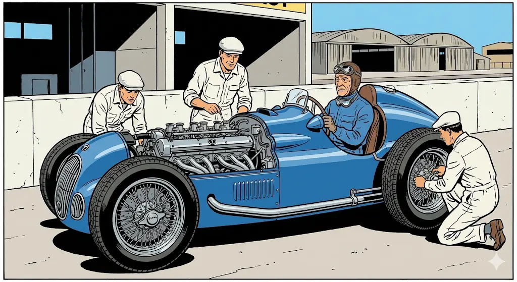 Wenn wir heute über die Formel 1 sprechen, denken wir an Hybrid-Motoren, Carbon-Chassis und Telemetrie in Echtzeit. Doch um die Seele des französischen Rennsports zu verstehen, müssen wir zurückreisen in eine Zeit, in der Rennwagen noch „Boliden“ waren – massiv, laut und in das unverkennbare Bleu de France gehüllt. Am 13. Mai 1950, beim ersten offiziellen Weltmeisterschaftslauf in Silverstone, standen sie in der Startaufstellung: Die Talbot-Lago T26C. Sie waren die letzten Dinosaurier einer vergangenen Ära und gleichzeitig die ersten Helden der modernen F1-Geschichte.